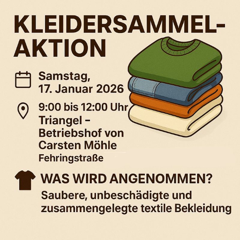 - Nur saubere, unbeschädigte und zusammengelegte textile Bekleidung