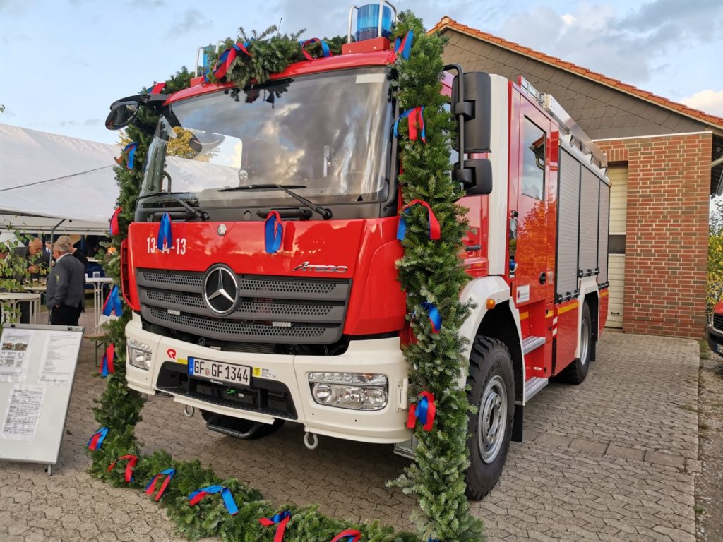 An die Feuerwehr Grußendorf wurde ein neues Löschfahrzeug (LF-KatS) übergeben, das ein durch Kurzschluss in der Fahrzeugelektrik in Brand geratenes und bereits ausgemustertes Fahrzeug ersetzt.