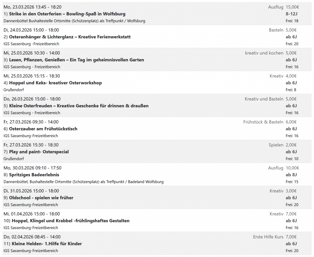 Das Osterferienprogramm der gemeindlichen Jugendförderung für Kinder ab 6 Jahren ist ab sofort im Onlineportal buchbar. Die Kostenbeteiligung liegt zwischen 2 und 15 Euro je nach Veranstaltung.