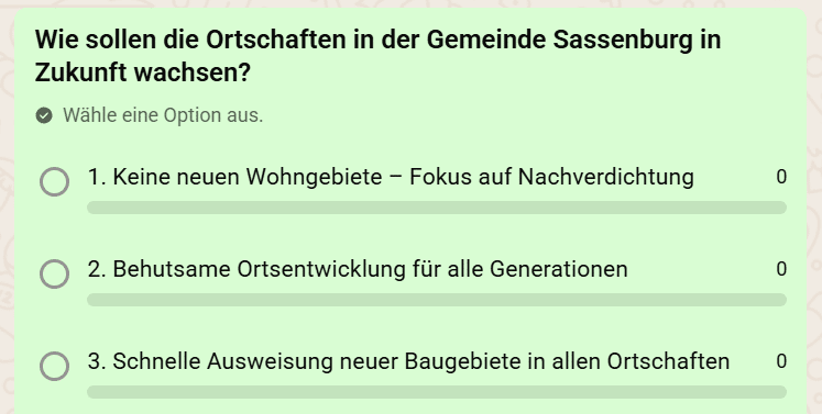Wir möchten eure Meinung hören! Die Frage, wie unsere Ortschaften in der Gemeinde Sassenburg in Zukunft wachsen sollen, betrifft uns alle — vom Erhalt unseres ländlichen Charakters bis hin zur Schaffung neuen Wohnraums.