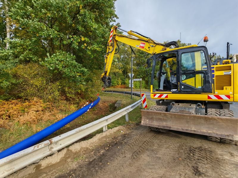 In der nächsten Woche wird ab Montag, den 27. Oktober 2025 die neue Trinkwasserleitung in einer Tiefe von 8 Metern! unter dem Moorkanal durchgezogen.